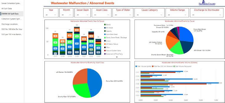Figure 1. New Sarasota County Public Utilities wastewater collection system Microsoft Power BI dashboard. (source: SCPU, Hazen, and VEBS) Continued on page 10