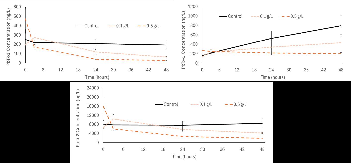 This work was funded through the Red Tide Mitigation Technology Development Initiative and was conducted in partnership with Mote Marine Laboratory. The group thanks Dr. Richard Pierce for his support with brevetoxin analysis. The group would also like to thank Kevin Claridge for his support throughout the life of this project.
