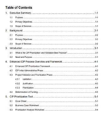 • Enhanced CIP development and prioritization process, guidance manual, and new decision support tool