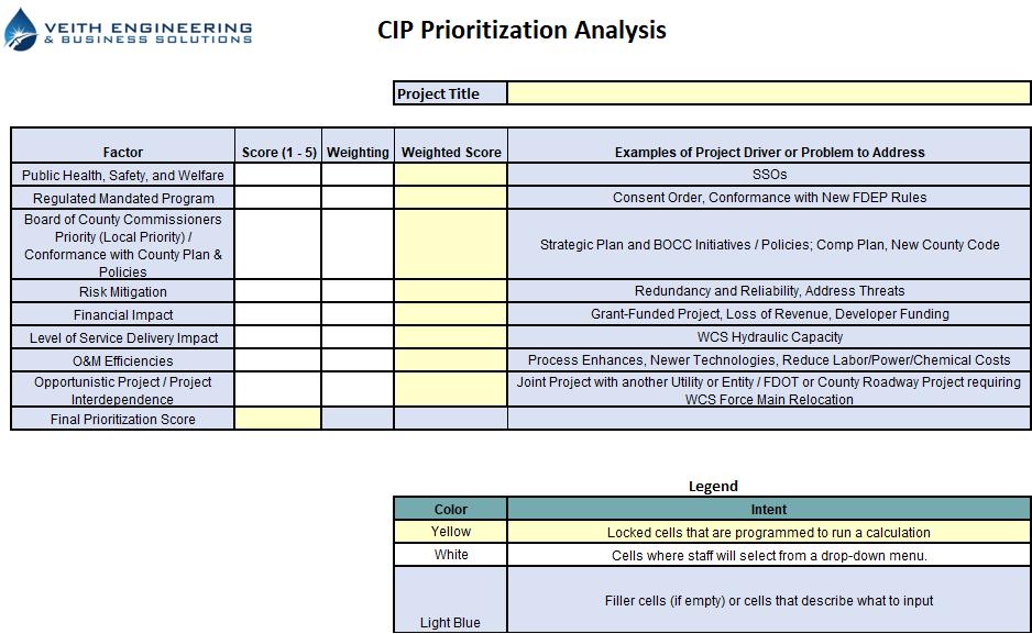S A formalized CIP prioritization process for the SCPU WCS to support financial planning and decision making for the following work activities: