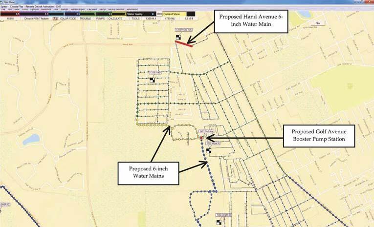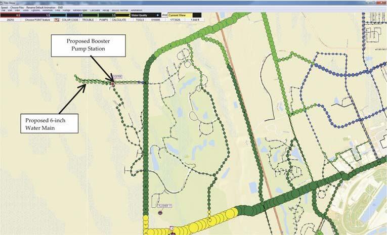 Initial model runs were performed using demands from the original model and results were reviewed with the city as a validation of the existing model. In general, initial modeling results were fairly indicative of residual pressures and showed that water pressures were good, with residual pressures greater than 50 pounds per sq in. (psi) throughout the potable water system.