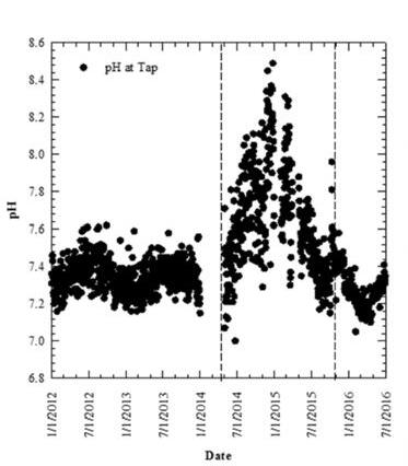 Water quality modeling depends on having a calibrated hydraulic model with reasonably accurate flows and velocities in the pipes. As such, model-calculated potable water system residual pressures were confirmed with field measure data prior to beginning water quality modeling.