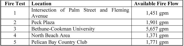 Results of the desktop analysis show that sufficient fire flows are available as long as there is ample potable water supply.