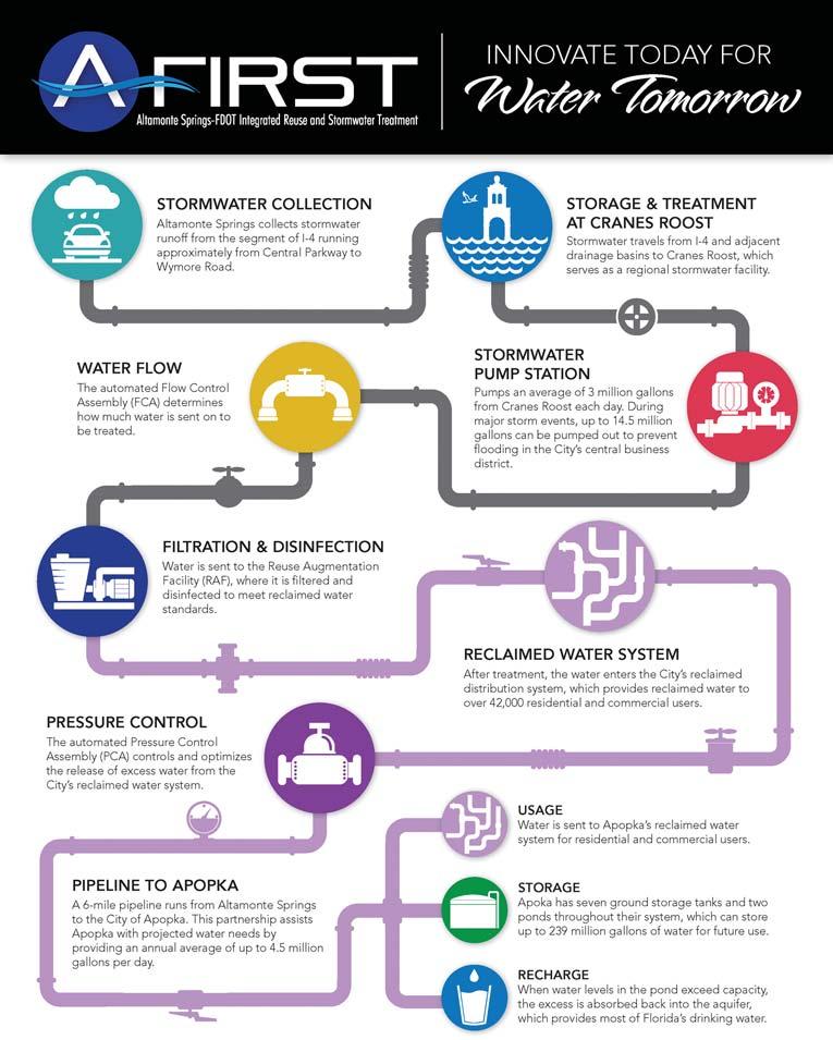 The project is the result of Altamonte Springs creating a new business model that requires support and participation with FDOT, FDEP, the St. Johns Water Management District, and the City of Apopka, as well as from Sen. David Simmons. Altamonte Springs conceived the project and will continue to manage construction and operations.
