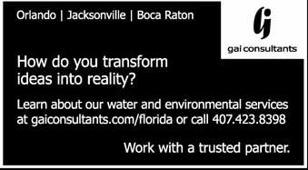 The Post Office will not forward your magazine. Do not count on getting the Journal unless you notify us directly of address changes by the 15th of the month preceding the month of issue. Please do not telephone address changes. Email changes to changes@fwrj.com, fax to 352-241-6007, or mail to Florida Water Resources Journal, 1402 Emerald Lakes Drive, Clermont, FL 34711