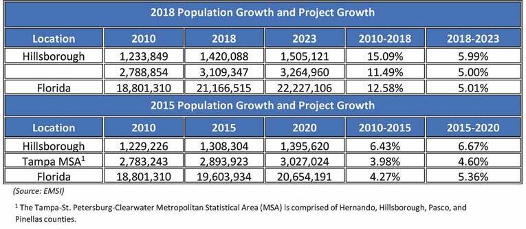 Table 1. Hillsborough County population and project growth projections.