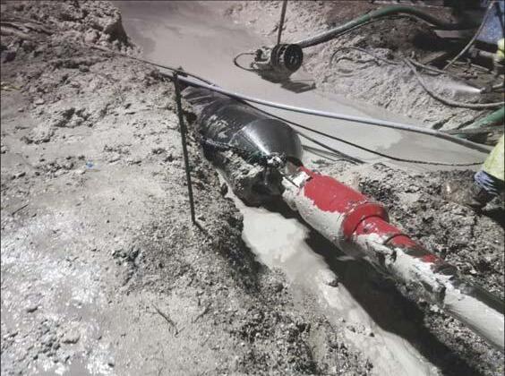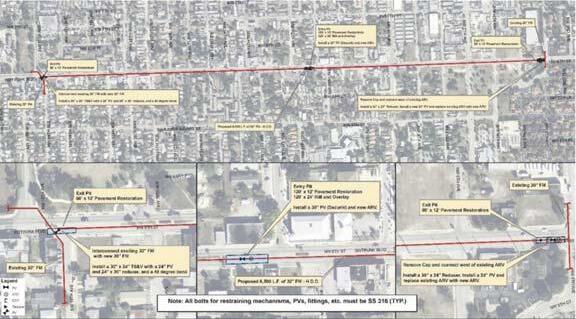 3 during the initial investigations, the existing conditions limited the pipe burst runs due to the abandoned line being cut up and segmented many years ago. Additionally, due to the shallow depth of the existing 24-inch line, pipe bursting wasn’t the preferred option.