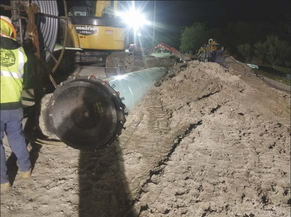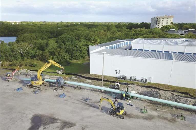of the major city collector roads and a highdensity mixed-use area, is comprised of approximately 6,100 linear feet of HDD (to be installed utilizing two bores) and approximately 200 linear feet of open cut 30inch PVC for the connections. The construction required coordination with regulatory agencies, utility providers, and Broward County for the closure and/or relocation of bus stops.