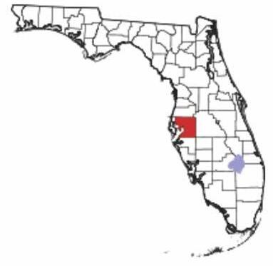 Figure 1. Location of Hillsborough County within the state of Florida (in red) .