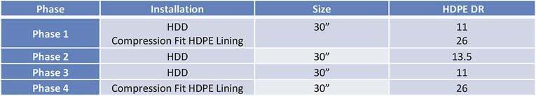 S Significant reduction in economic impact: The design-build approach, coupled with trenchless methods of compression-fit HDPE pipe lining and HDD with the installation of HDPE pipe, helped save significant dollars over other construction methods.