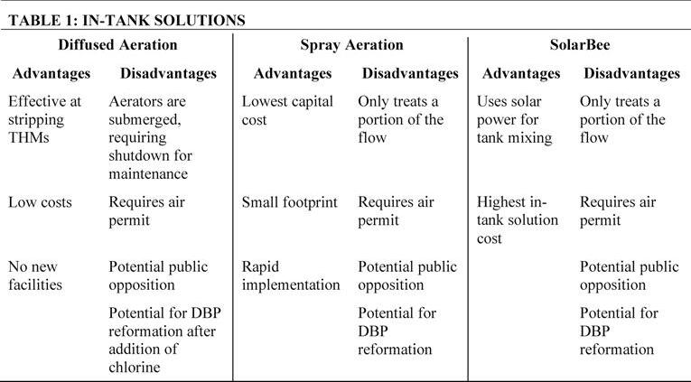 This section presents the advantages and disadvantages of each option for localized treatment in the distribution system (in-tank solutions).