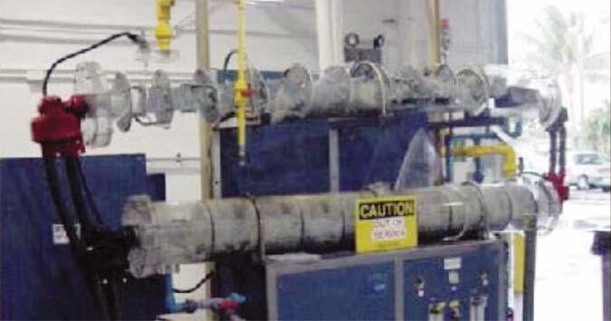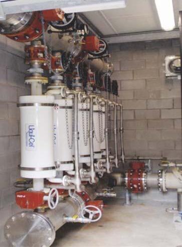 Layne Christensen (Layne), which packages the membrane equipment, has conducted several pilot programs with membranes for THM removal (the membranes are manufactured by Membrana). Layne reported 70 to 85 percent THM removal through a single membrane, and levels increase to more than 90 percent when two units are operating in series. Figure 4 shows a recent installation for deaeration.