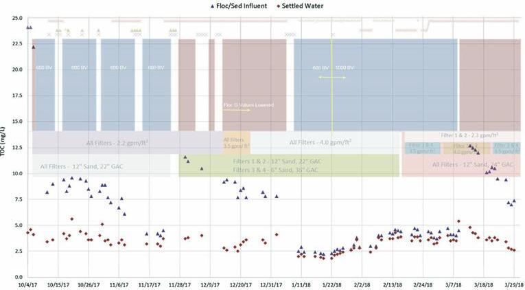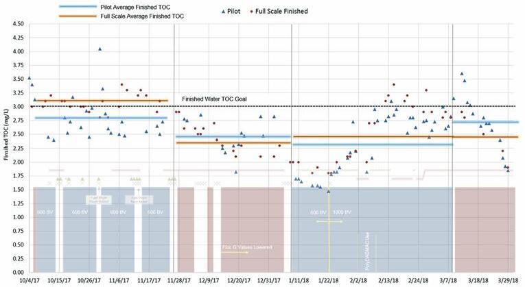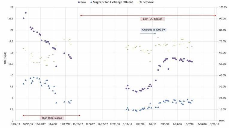As a result of implementing the oxidation, prefiltration, and IX system in parallel with the
