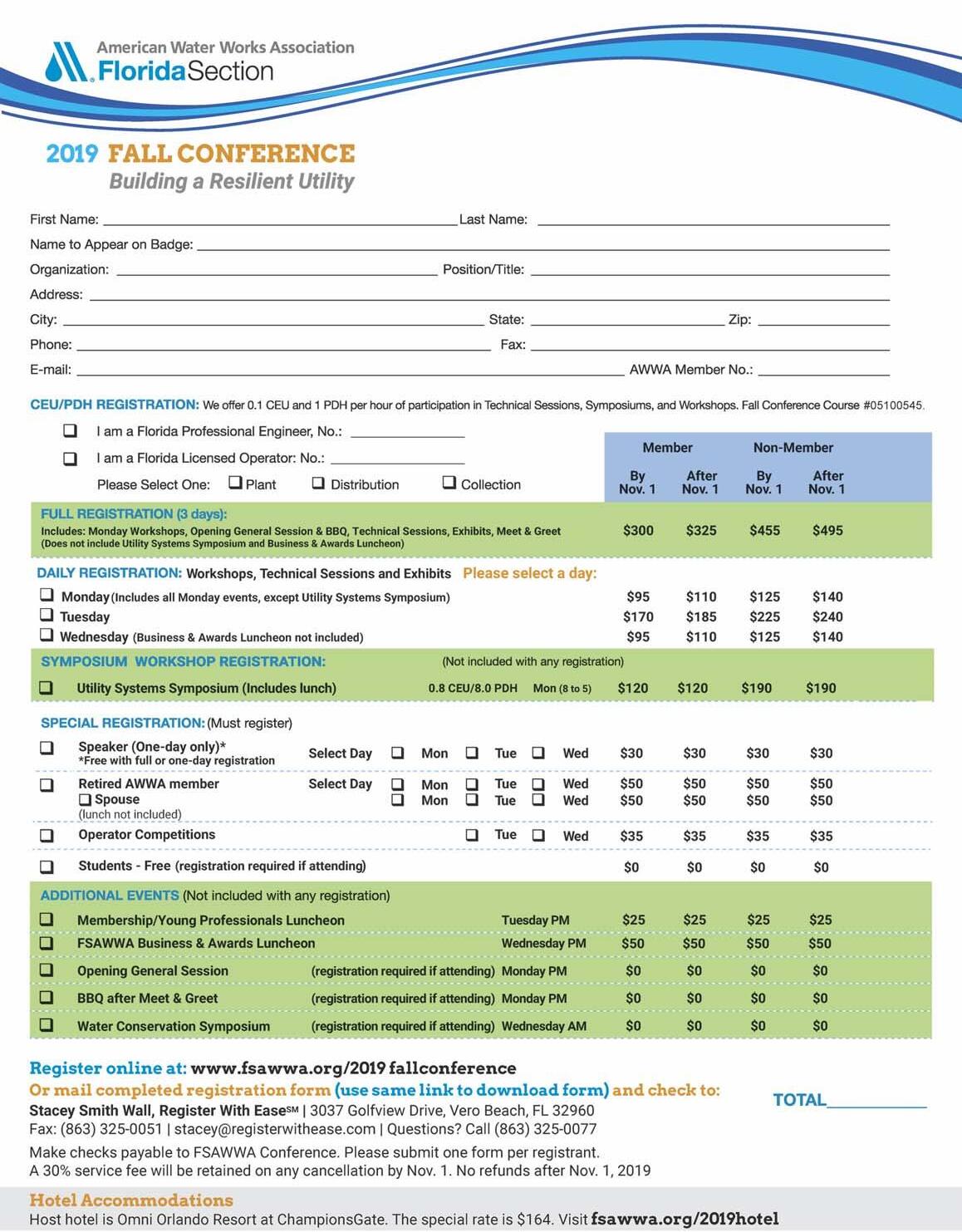 20 FSAWWA Fall Conference Registration Form