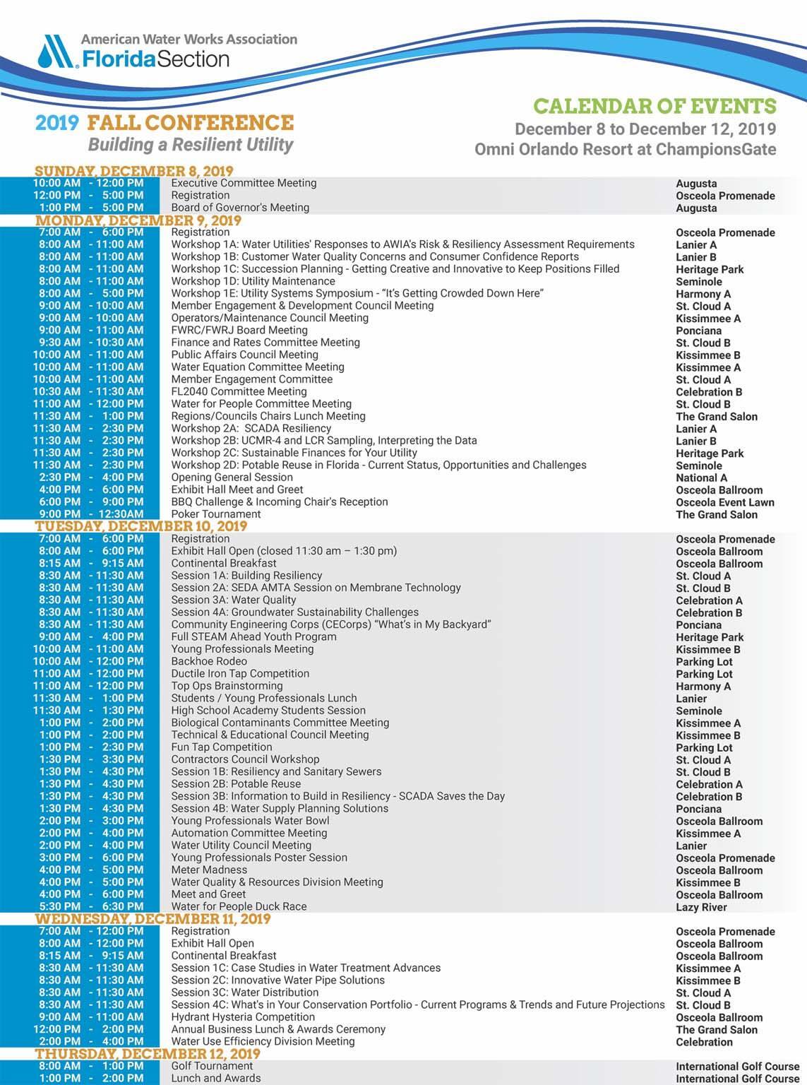 19FSAWWA Fall Conference Calendar of Events