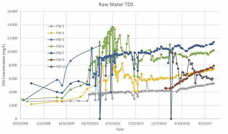 The city undertook a membrane element replacement project concurrently with a water quality optimization upgrade, which included implementation of an oxidation, prefiltration, and IX system. These projects were implemented to provide improvements to maintain current satisfactory operations, improve treatment reliability and water quality, and lower water production and system flushing/maintenance costs. At the present time, the membrane element replacement effort has been successfully completed and is in operation. The prefiltration, oxidation, and IX system construction is complete, with commissioning and closeout activities occurring at the time this article was written.