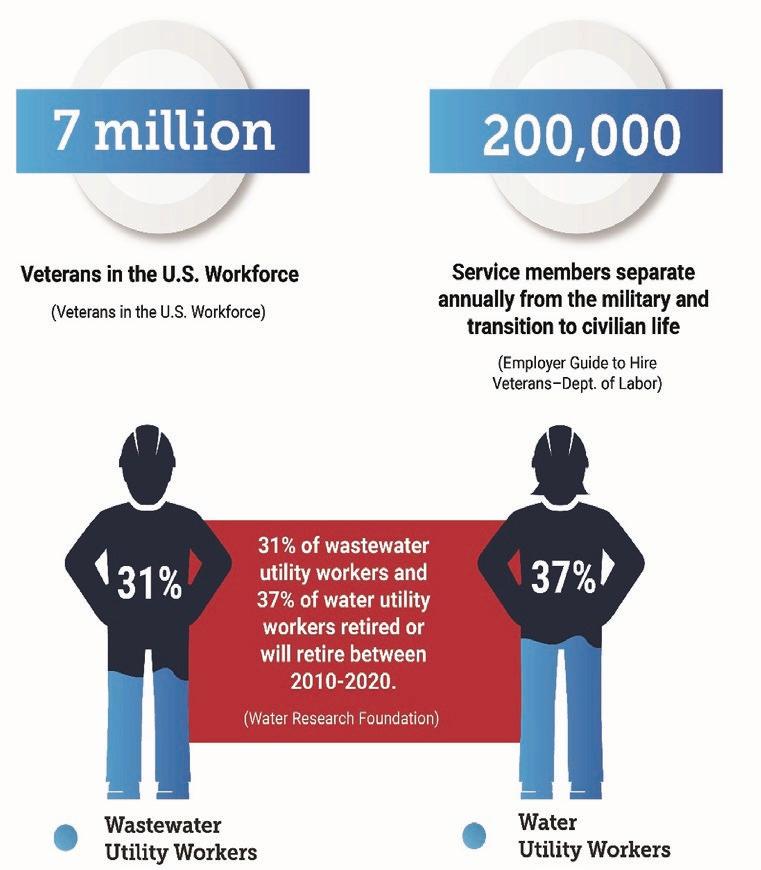 Veterans have many skills necessary to thrive in the water sector. They have experience working in a highly regulated environment, they have shown a commitment to public service, and they handle stress well in crisis situations. Veterans are returning to homes in rural and urban locations and looking for employment.