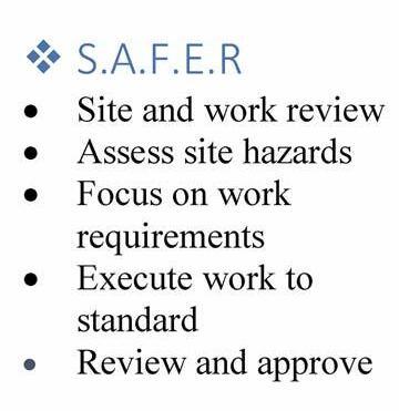 trades provide hands-on training for the staff. This ensures a working knowledge of the systems and equipment being used. Hillsborough County also utilizes the safety acronym S.A.F.E.R when approaching tasks (see sidebar).