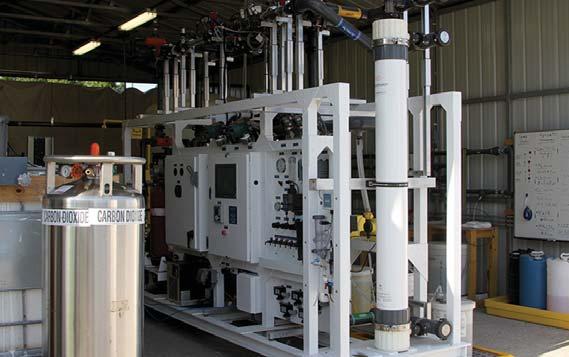 The other key aspect of the purification process is post-treatment of the purified water to remove dissolved oxygen and make the water chemistry compatible with the native aquifer water and rock matrix. Membrane contactors were used to effectively remove 3.5 log of dissolved oxygen to below 10 parts per bil. Carbon dioxide and calcium were added to balance pH and alkalinity, and sodium bisulfide was added to quench residual hydrogen peroxide from the AOP and reduce the Oxidation-Reduction Potential (ORP) of the water.