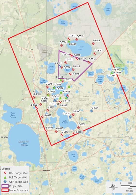 The concept of direct aquifer recharge for this project is to inject the purified water into lower Zone A of the Upper Floridan aquifer. The water will migrate laterally through lower Zone A and slowly upward into upper Zone A. The effect of the recharge is to increase aquifer levels up-gradient of the city’s supply wells, and reduce the amount of drawdown induced by the well field.