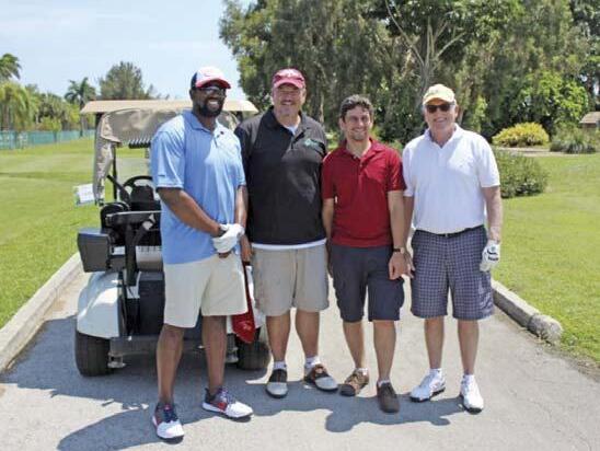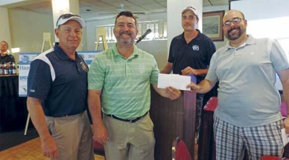 From left: Tim McVeigh, Scott Anaheim, Terry McVeigh, Mike Darrow, and Al Monteleone display the FWPCOA sponsor plaque.