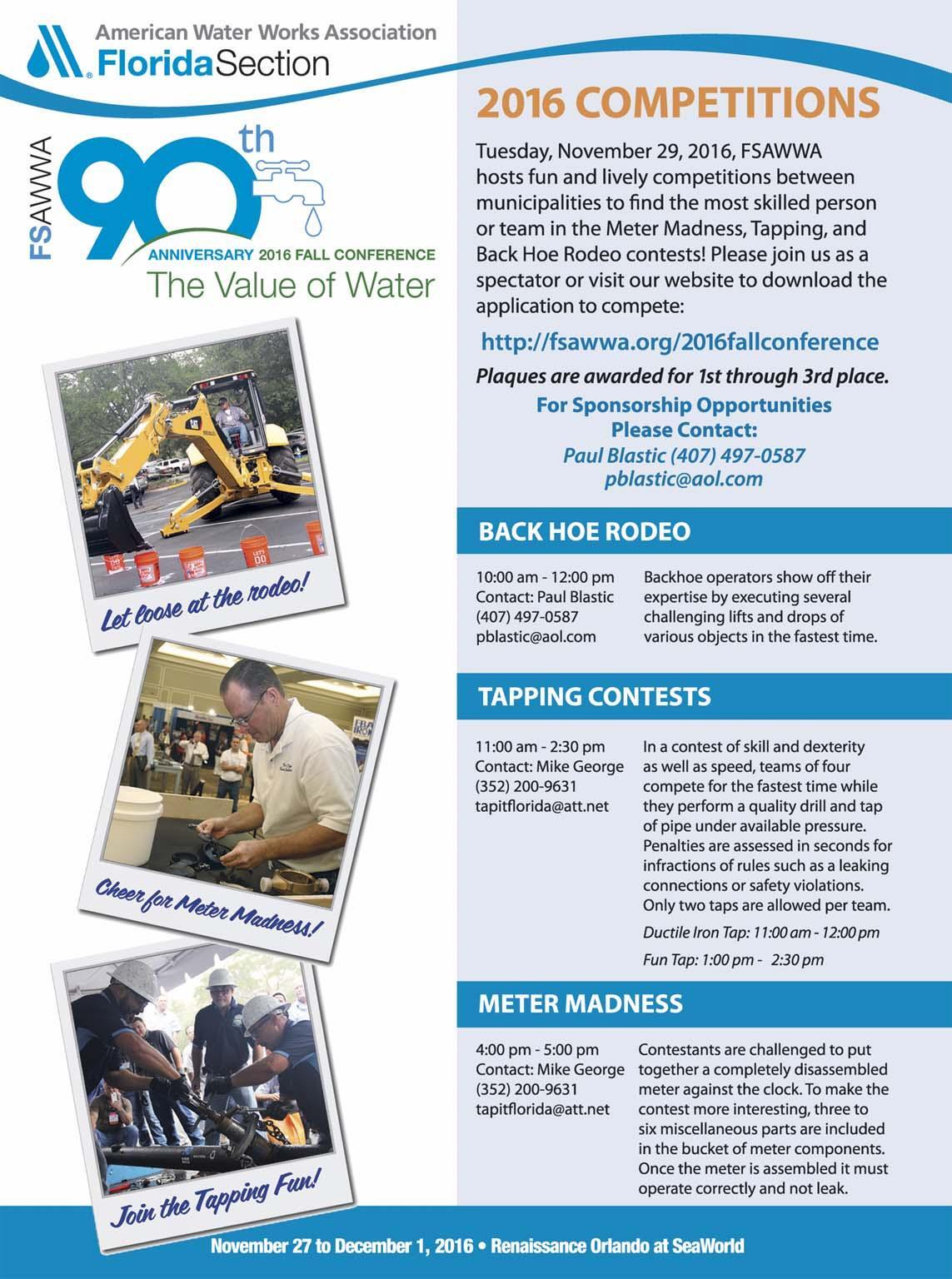 When Phil Donovan, the Florida Water and Pollution Control Operators Association (FWPCOA) publicity chair, discussed Past President Tom King’s desire to have someone write an article about the 2016 Florida Water Resources Conference (FWRC), and asked if I would be interested, I pondered to my wife that night, “Why me?” She simply reminded me that I had taken more pictures at last year’s conference than I did on our week-and-a-half vaca-