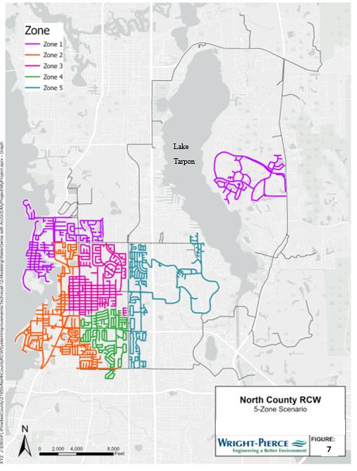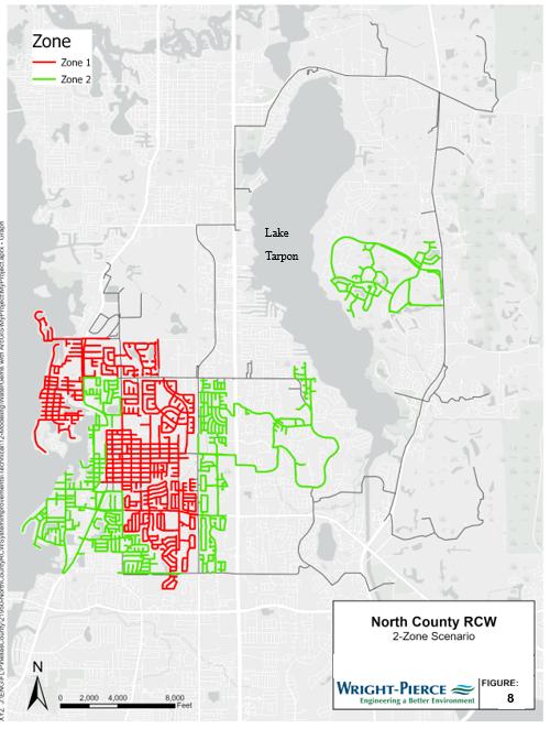 Pinellas County owns and operates the reclaimed water (RCW) transmission and distribution system in North County (county), which is a public access reuse network in which RCW is primarily used for spray irrigation of lawns, landscaping, and golf courses. During peak demand periods, the system experiences operational challenges, including low pressures, constrained supply, and customer noncompliance with irrigation restrictions.