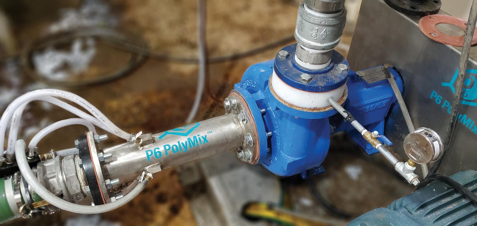 1. POLYMER REDUCTION: P6 PolyMix® Systems reduce polymer consumption by providing complete polymer/sludge mixing in a shear-sensitive manner. This patented mixing process allows long-strand polymer chains to remain intact and unbroken and wastewater floc to remain intact and unsheared. Typical applications result in a 25-50% REDUCTION IN POLYMER CONSUMPTION, thus saving the customer thousands of dollars in polymer expenses. By not breaking up the polymer chains, the dewatering equipment will experience less fouling, providing more reliability and reducing equipment cleaning costs.