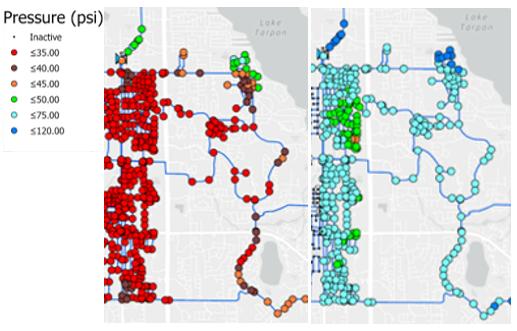 Additional performance gains were achieved through the integration of a planned inline booster station, which further elevated pressures in hydraulically disadvantaged