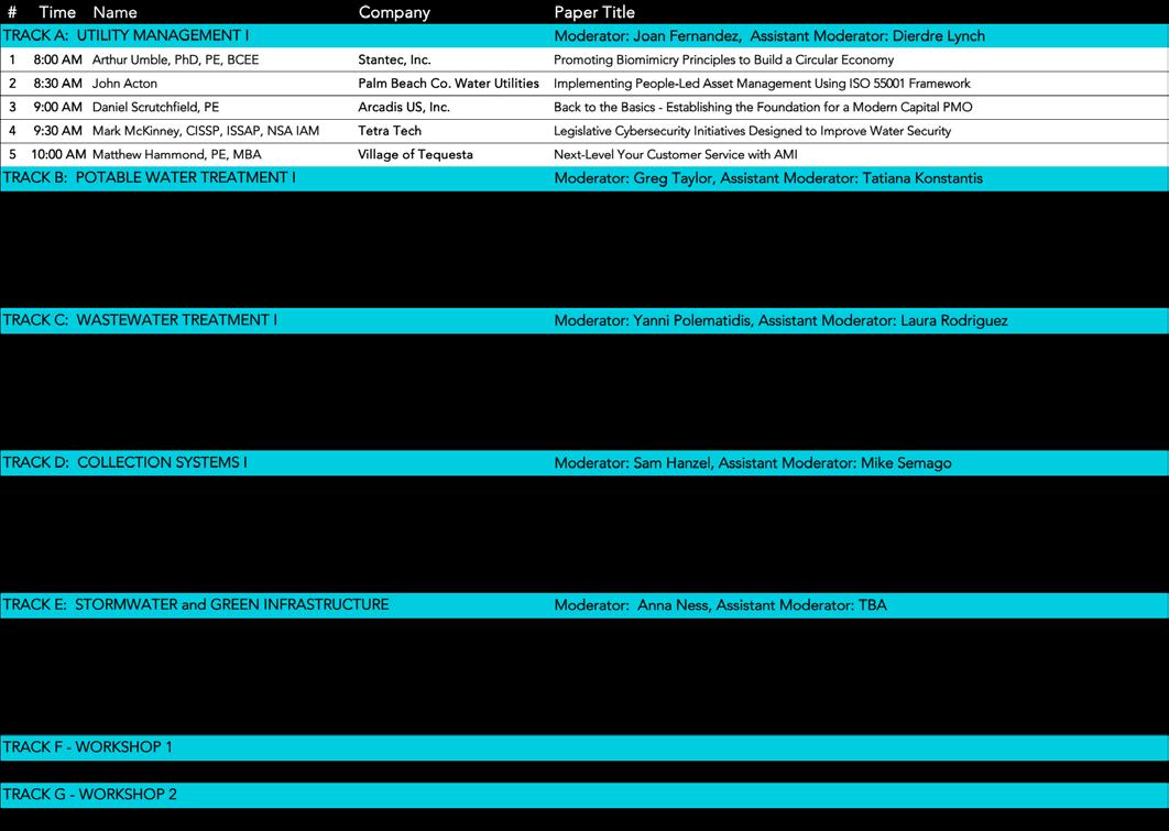 All registered attendees are welcome and encouraged to attend this event!! Facilitated by Randy Brown from Pompano Beach and Marjorie Craig from St. Cloud, an audienceinteractive panel, with members from across the water sector, share their experiences, inspirations, and what motivates them. The event allows for peer-to-peer exchange of knowledge and support featuring key questions for thought for all in the industry.