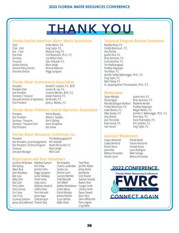 It is my pleasure to welcome you to Florida Water Resources Conference 2022 after a threeyear break! Daytona Beach is known for bringing together the wildest groups–motorcyclists, NASCAR fans, spring breakers, and now dedicated water professionals. The conference is able to bounce back only from your support: by registering, volunteering, setting up exhibits, and becoming a sponsor, your involvement is strengthening our organization.