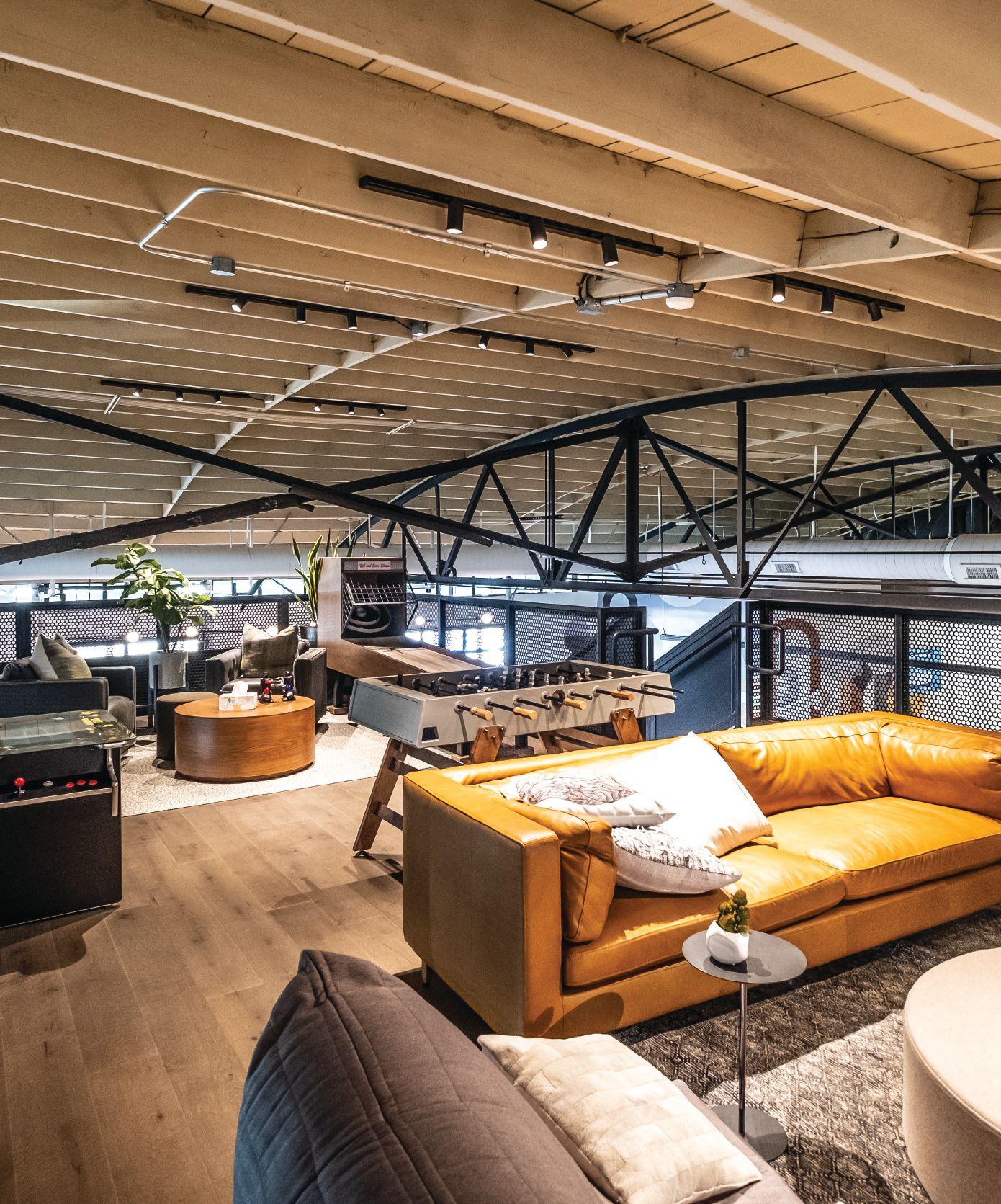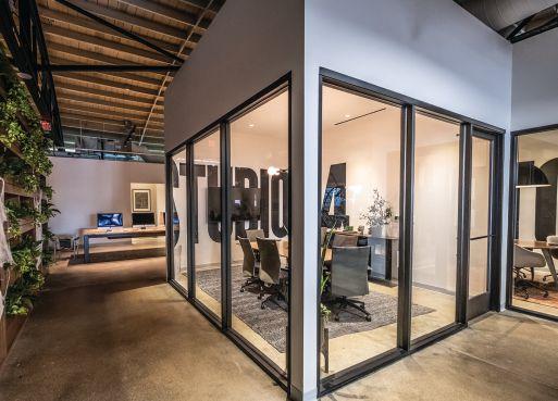 The 30,000-square-foot warehouse at 2733 Cullen St. — designed with a minimalist, coffee shop-esque aesthetic — has all the makings of a creative workspace. There are lounge areas, conference rooms, and open-concept desks, plus a few elevated amenities like an upstairs loft and restaurant-size bar equipped with a kegerator and cold-brew coffee on a tap. Another perk is the adjacent Lowtown Studios, a separate enterprise run by the marketing firm’s president and CEO Neil Foster, offering four sound stages and other audio/video production capabilities.