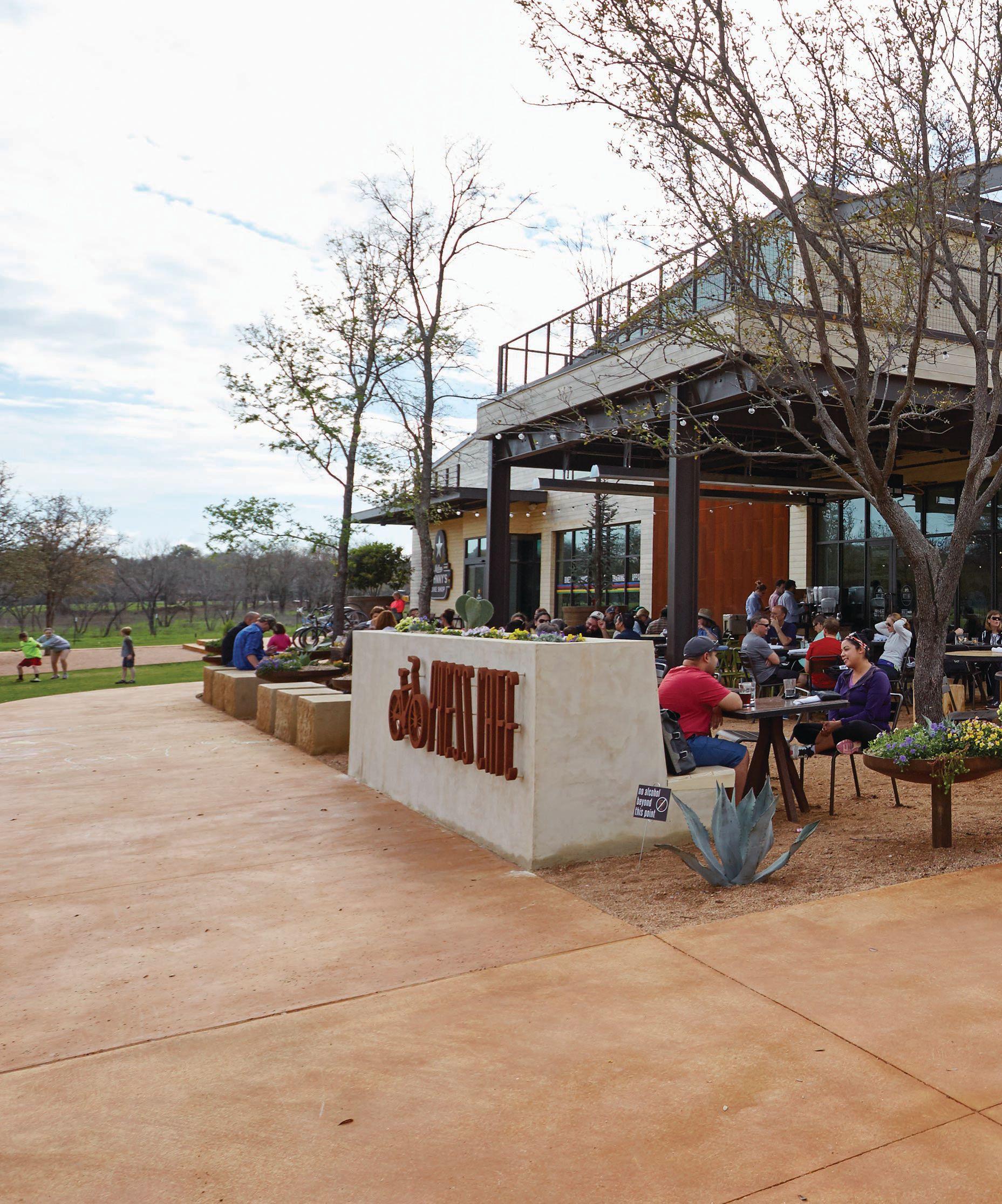 modatesThe26,000-square-footspacecertainlyaccoma crowd,andtheambianceiseverything you expect ifyou’veeaten barbecueinTexas— cementfloors,longwoodentables,andplentyof neon beersignswithsports on theTVandclassic countryplayingover thespeakers. Guests selectcuts ofmeat fromthepit,then