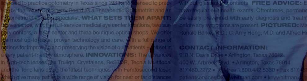 Finally, our cover story this month is another essential and useful list: “Top Doctors.” This consistent best seller is a go-to source for Tarrant County residents looking for the top physicians in town. It’s always a reader favorite.