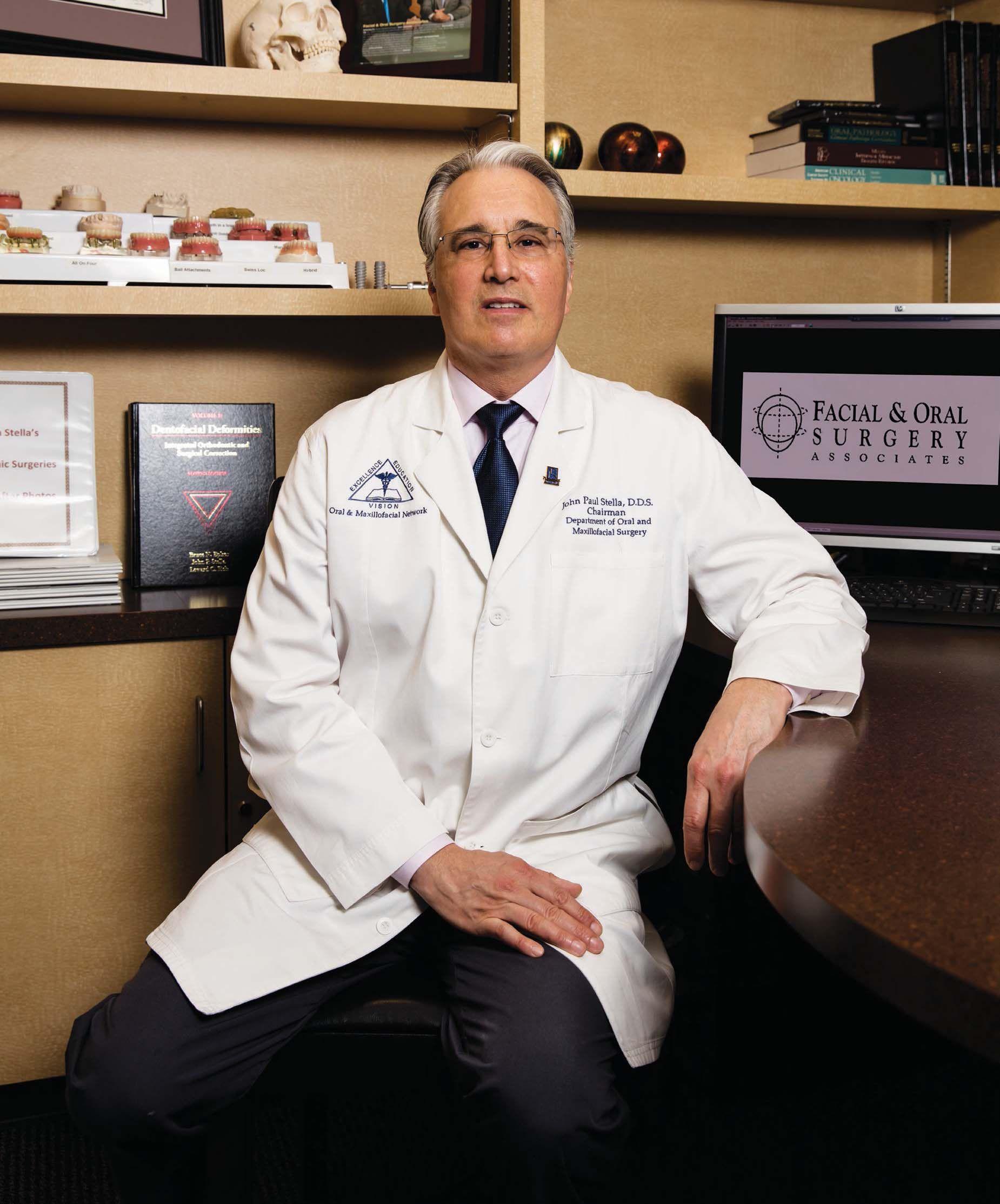 Dr. John Stella graduated Valedictorian of Columbia University School of Dental and Oral Surgery in New York City. In 1988, Dr. Stella completed his residency in Oral and Maxillofacial Surgery at University of Texas Southwestern Medical Center in Dallas. Currently, Dr. Stella is a senior partner with acial and Oral Surgery ssociates, with of ces in rlington, ort orth and eatherford. e was elected resident of the Medical staff at John eter Smith ospital from 1 1 where he also serves as Chairman of the Department of Oral Maxillofacial Surgery. aving written numerous books and articles, Dr. Stella has developed international recognition in the areas of advanced dental implant technologies, orthognathic surgery and facial skeletal reconstruction.