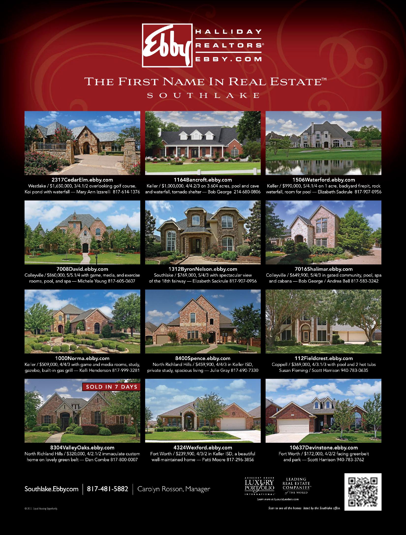 referring back to that pre-marital counseling session regarding traffic frustrations, my wife and i live in a ledo and commute to work each day. w hen i was writing this publisher’s note, the 1960s Green Acres t V show kept coming to mind. so, here’s my local version from my wife’s perspective. “downtown is where i’d rather stay. i get allergic smelling hay. i just adore a penthouse view. dah-ling i love you but give me samuels avenue.” Unlike ed a lbert who moved eva gabor to green acres, my wife and i now have a unit at Villa de Leon. (we did keep the house and green acres in a ledo.)