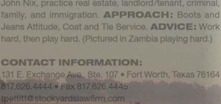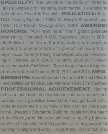 The Fort Worth, Texas magazine list of Top Attorneys as voted on by their peers.