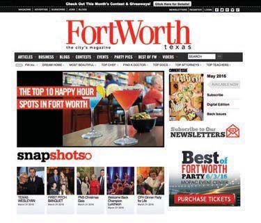 If someone beat you to the last newsstand copy, don’t worry. The virtual ed tions of both current and previous issues are available on our website Flip through the pages to read more about the great city of Fort Worth by vis