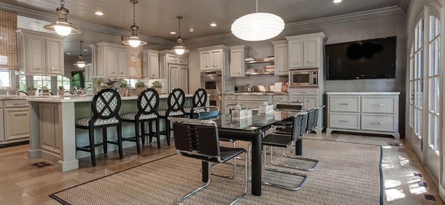 The large foyer features a double staircase and opens onto a two-story room that the family once dubbed the “ballroom” because their five boys loved to play soccer in it. A walkout basement is designed with their sons in mind, with family and game rooms that open onto the pool area and overlook a large park with a pond.