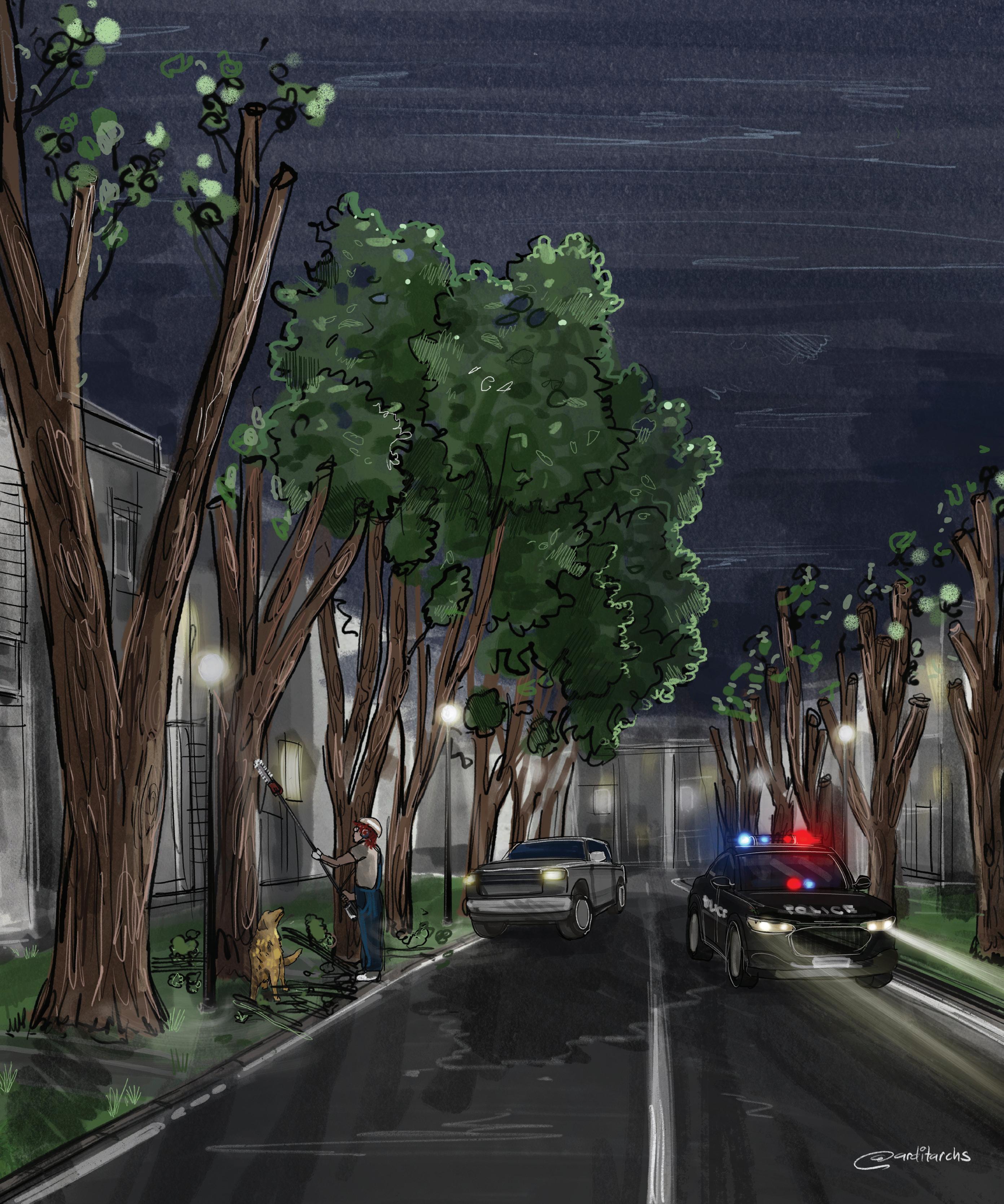 The Midnight Tree Trimmer Who was the red-haired man with a dog and gray truck, trimming trees, without prompting, in the middle of the night in a Fort Worth neighborhood? Unraveling a mystery.