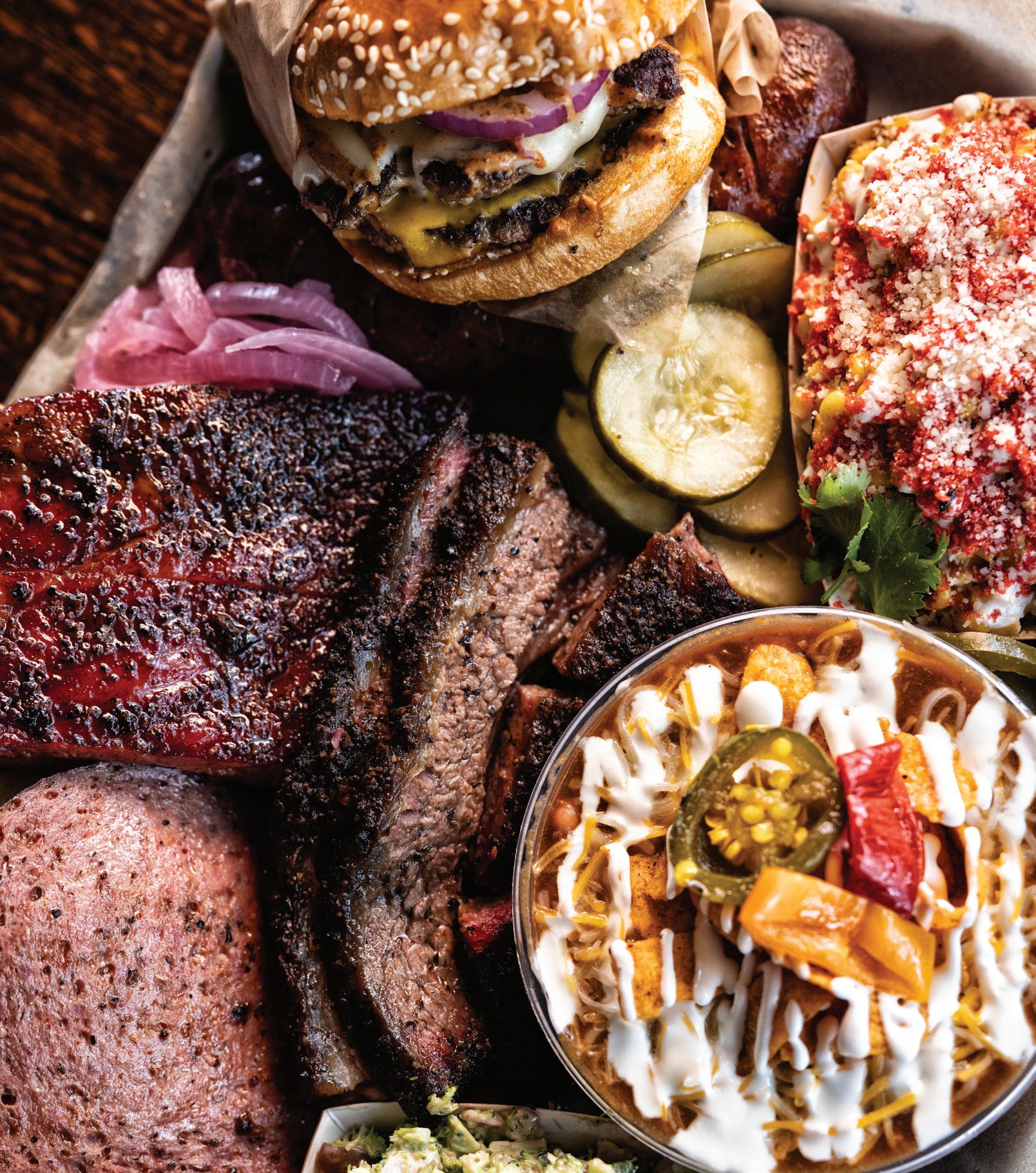 Today, his food is finally catching fire with North Texas barbecue aficionados who’ve seen raves on social media for his smoky, peppery brisket and thick and juicy pork ribs. The meat side of his menu also includes chicken, bologna, turkey, and two kinds of sausage. He also offers smashburgers, whose super-thin patties are made from brisket, and for sides, there’s brisket-studded pinto beans, mac and cheese, and potato salad.