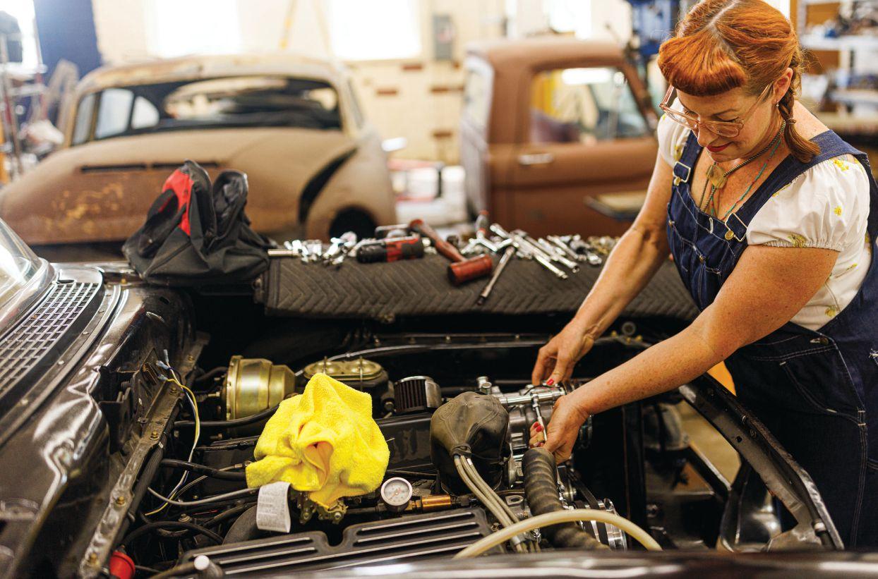 The couple moved into a former military base built in 1940, and the building gives them enough space for both a house and a garage. Cline has used the garage to host beginner’s courses for folks interested in working on cars (see sidebar), and one day soon, she and her husband hope to kickstart a business that restores vehicles and offers engine and performance work. In the interim, Cline continues to edit Driving Line, and she has yet another job title: city councilwoman.