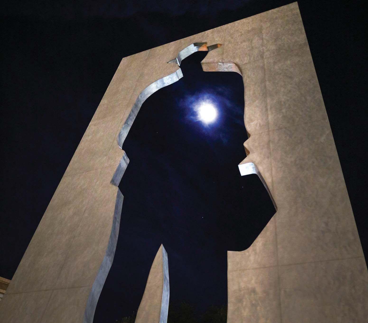 » Photographer Brian Luenser captured “Man With a Briefcase” when the moon appeared to align right at the heart of Burnett Plaza’s 50-foot-tall, aluminum-brushed sculpture. Boston-based artist Jonathan Borofsky built the structure in 2002. According to Visit Fort Worth, this work aroused slight controversy due to the businessman’s choice of headgear: He wears a fedora rather than a Stetson — the preferred choice of Fort Worthians.