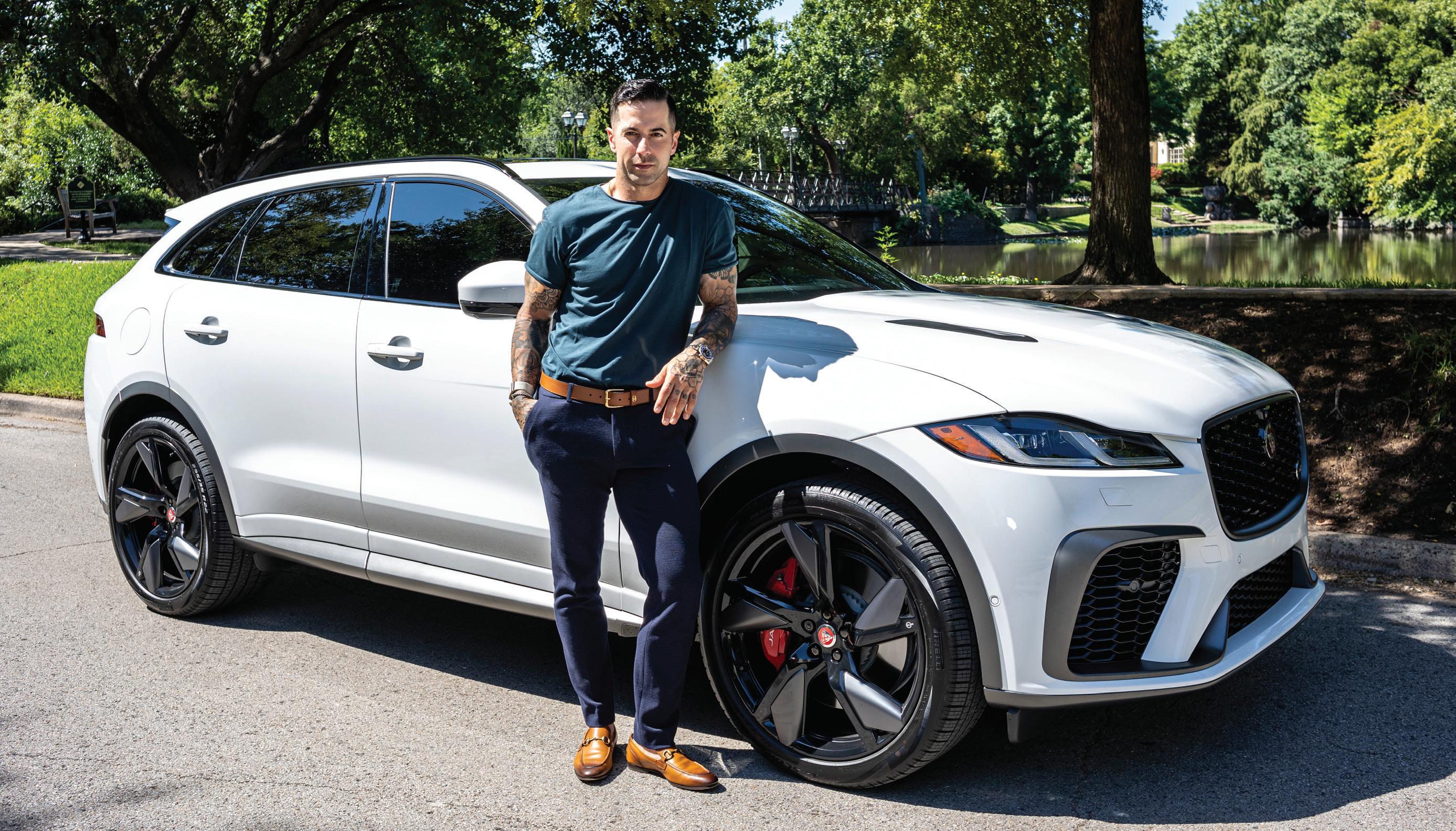 Since his dad worked for Jaguar for 35 years, Guthrie says, “I grew up appreciating the artistry, luxury, and appeal of a Jaguar automobile.” Guthrie’s current ride is a 2022 F-PACE SVR, the highly charismatic luxury performance SUV, from Jaguar Land Rover
