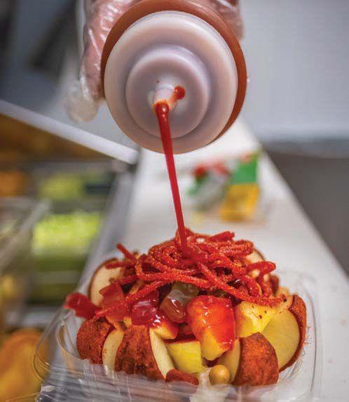 The Sweet Fruit of Kokitos’ Labor Chamoy straws and gummy candy spilling out of a cup of Squirt soda? This frutería is a sweet tooth’s fever dream.