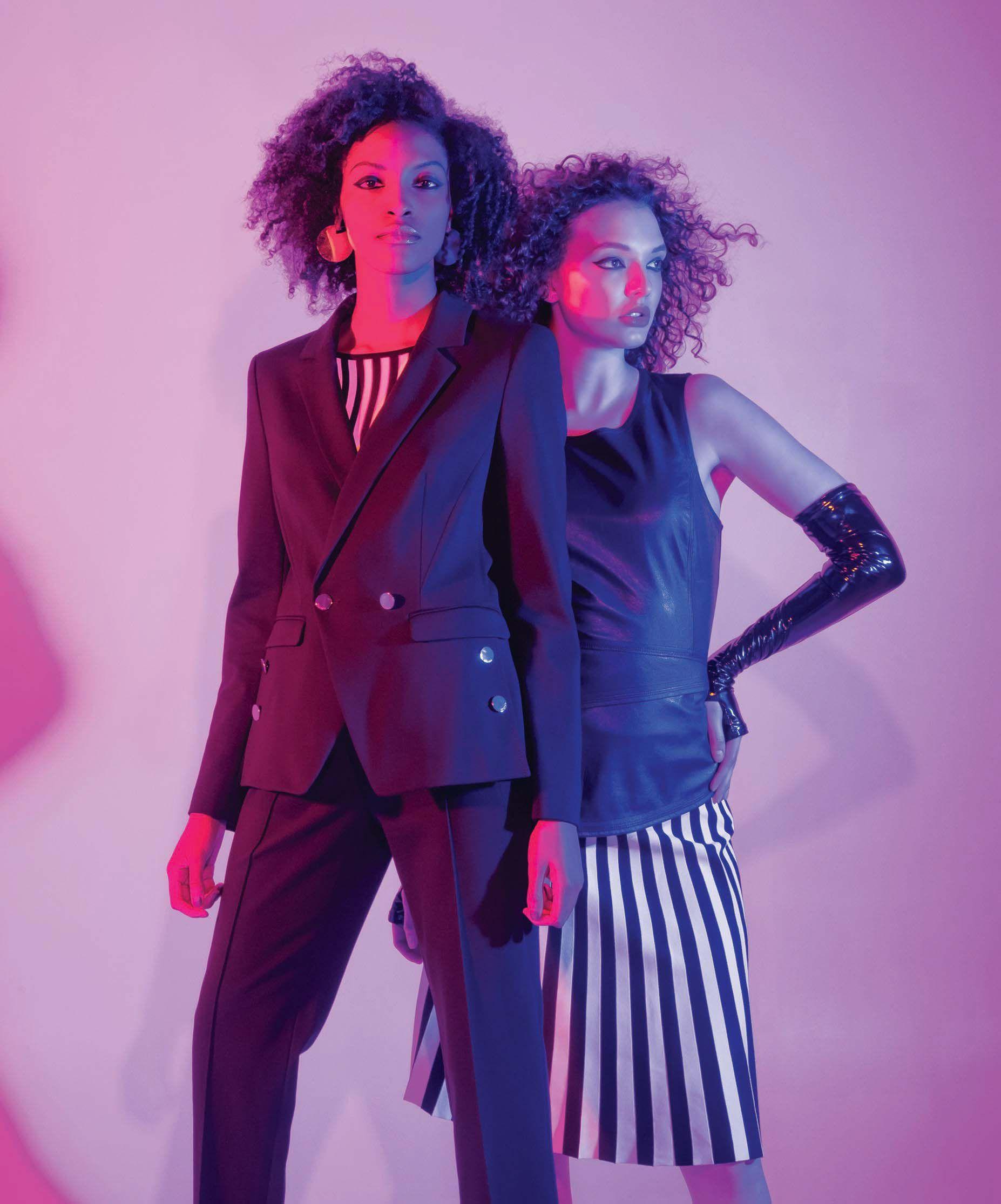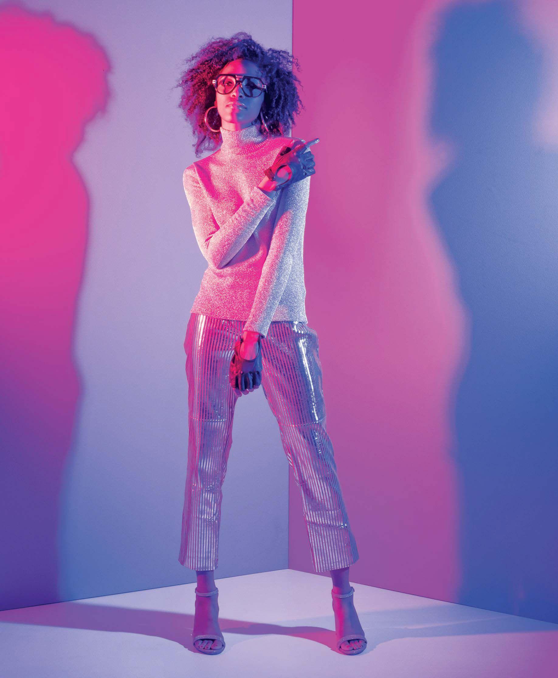 Eighties Elevated Fall fashion has us dialing back to the ’80s, when black leather and metallics reigned in rock ’n’ roll.