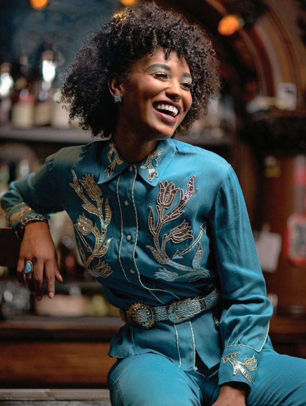 Elaine Agather came to our photo studio with three business outfits and two Nudie suits in tow — you can catch a glimpse of her second Nudie suit on the story’s opening spread (page 72). Combining the photo shoot with the interview, Mrs. Agather successfully charmed our office for three hours. A special thanks to Fort Worth Camera for providing lighting and film.