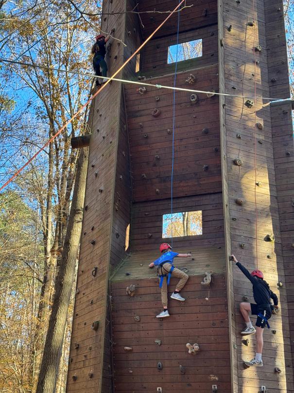 Over the weekend of Nov. 21st23rd, our youth ventured to Camp Willow Run for a Fall Retreat centered on the theme, "Friendsgiving " We learned, discussed, and pondered what deep, trusting and healthy friendship looks like and how we can learn from friendships in the Bible such as Ruth and Naomi, and David and Jonathan, and how friendship is rooted in love. In addition to worship, we played soccer and basketball during our free time, climbed a rock wall, and explored the beautiful grounds of Camp Willow Run, which is off Lake Gaston. We also painted our Advent worship art letters of "JOY" during the first part of our free time on Saturday afternoon to have our youth be a part of preparing for the season of Advent at our church During this time, we truly experienced joy as we had some laughs coming up with the imagery to paint and as it started to rain in the middle of our painting session.