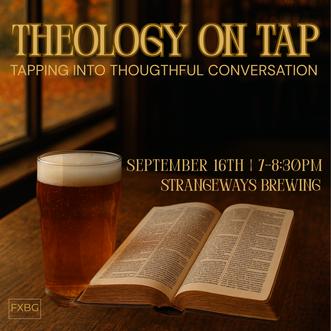 Theology on Tap is back for the fall! We will meet at Strangeways Brewing from 7-8:30 pm twice a month on Tuesday nights from September to November Dates for the fall are Sept 2nd & 16th, Oct 7th & 21st, and Nov 4th and 18th Join us for thoughtful conversation around theology and current events Topics will be based on current events of the week Contact Beth Bailey for more details at beth@fxbgbaptist org
