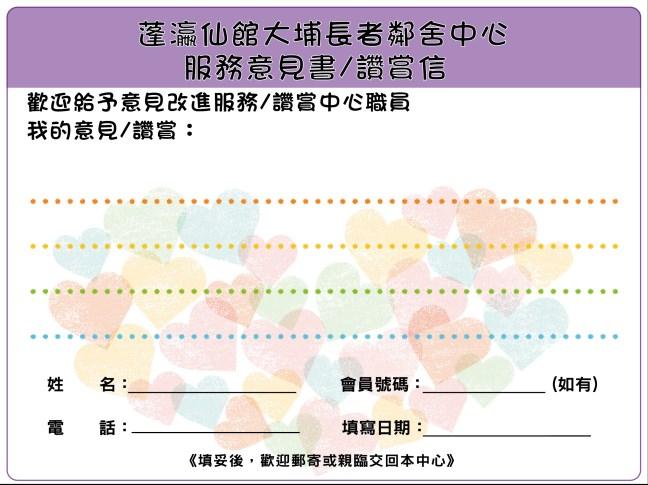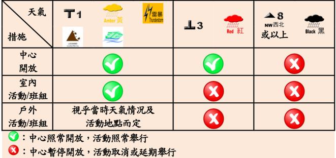 ※ 如有任何疑問或遇有特別情況,歡迎向職員提出, 中心有權作一切最後決定。
